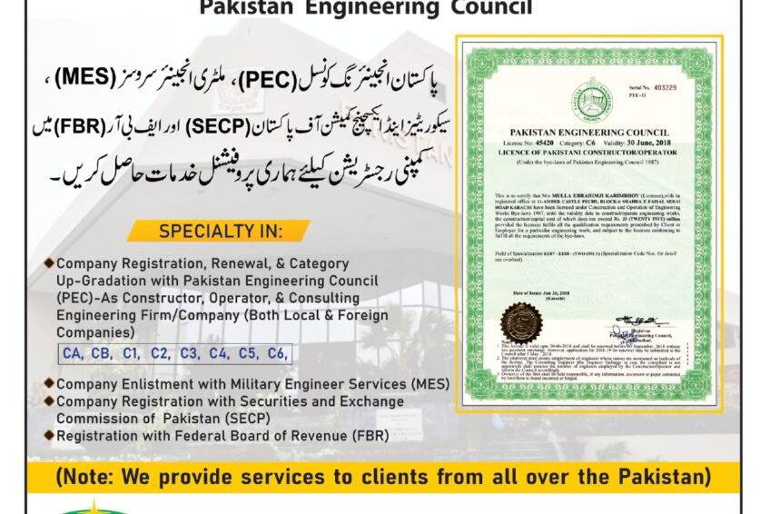 - Company Registration with Pakistan Engineering Council (PEC)