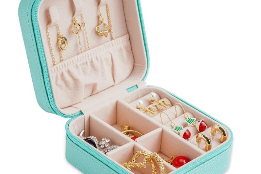 Jewelry Organizer PU Leather Zipper Portable Storage Box Case Dividers